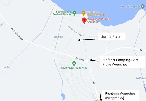 Umfahrung Murten Richtung Avenches, Durchfahrt der Dörfer Greng und Faoug, nach Faoug rechts Richtung Neuchâtel/Salavaux abbiegen. Unmittelbar nach der Nespresso und dem Hotel-Restaurant „Lacotel“ befindet sich auf der rechten Seite die Einfahrt zum Camping Port-Plage Avenches.